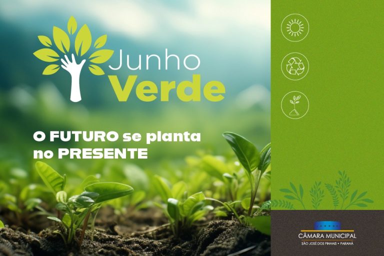 Pelo 2º ano consecutivo, a Câmara Municipal de São José dos Pinhais promove a campanha Junho Verde, com o objetivo de falar sobre educação ambiental. Para esse ano, está programado um bate-papo o gestor socioambiental da Companhia de Saneamento do Paraná (Sanepar) Junio Ferreira Lima sobre “Água, Saneamento e Mudanças Climáticas”, onde será abordada a tragédia do Rio Grande do Sul. O encontro acontece dia 19 de junho, às 9h30, no Plenário da Casa.